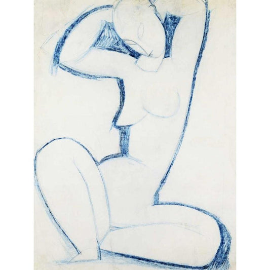 Blue Caryatid II Black Modern Wood Framed Art Print by Modigliani, Amedeo