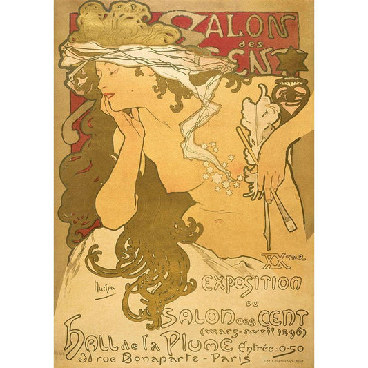Salon de scent Black Modern Wood Framed Art Print by Mucha, Alphonse