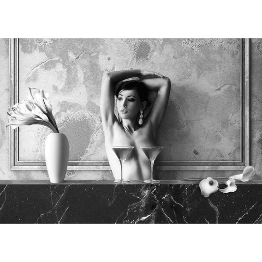 Cocktail for Two (BW) Black Modern Wood Framed Art Print by Lauren, Julian
