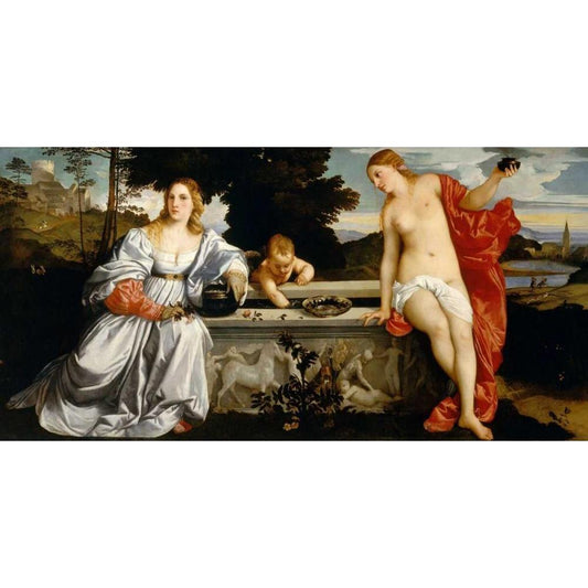 Amor Sacro e Amor Profano Black Modern Wood Framed Art Print by Tiziano