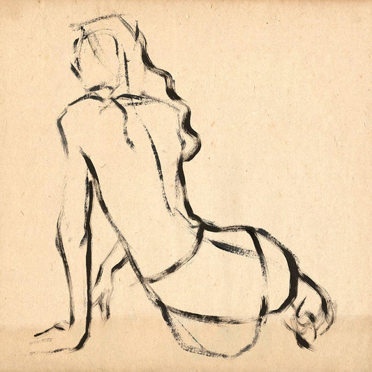 Male Body Sketch III Black Modern Wood Framed Art Print by Wang, Melissa