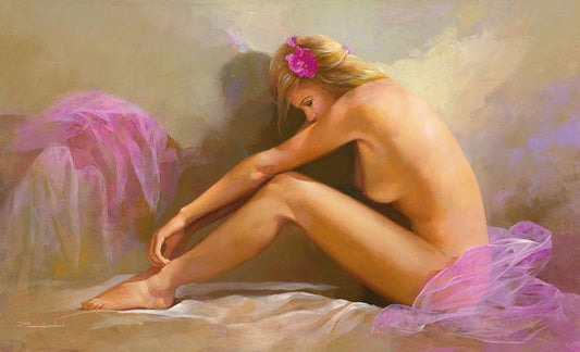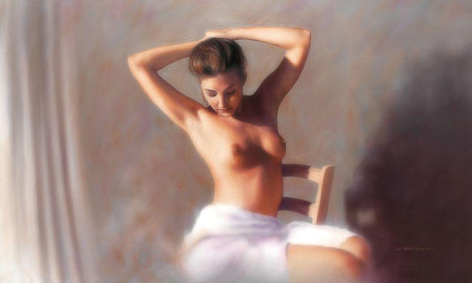GIADA ASCOLTANDO MUSICA ROMAN. White Modern Wood Framed Art Print with Double Matting by Sgarbossa, Antonio