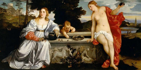 Amor Sacro e Amor Profano White Modern Wood Framed Art Print with Double Matting by Tiziano