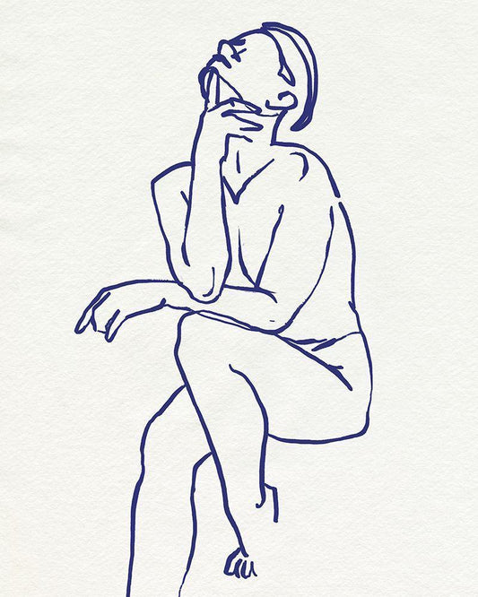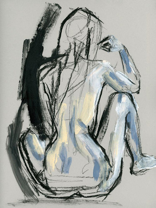 Sketched Pose I White Modern Wood Framed Art Print with Double Matting by Barnes, Victoria