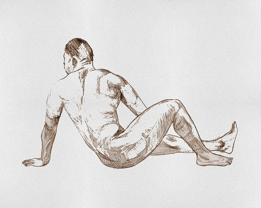 Male Body Sketch I White Modern Wood Framed Art Print with Double Matting by Wang, Melissa