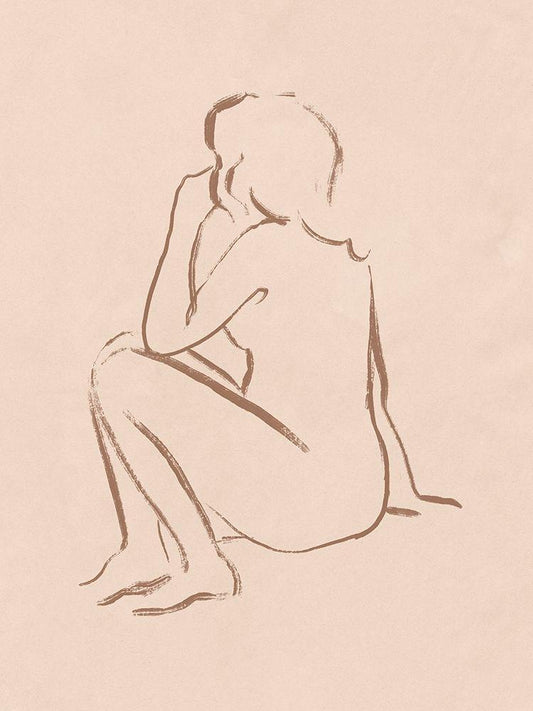 Linear Nude I White Modern Wood Framed Art Print with Double Matting by Vess, June Erica