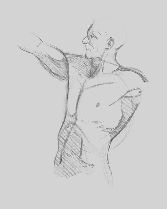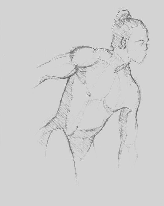 Male Torso Sketch I White Modern Wood Framed Art Print with Double Matting by Green, Jacob