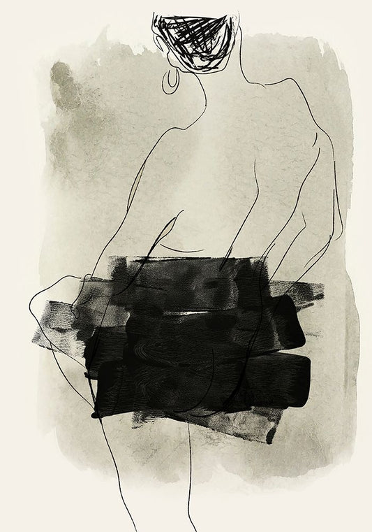 Nude Figurative White Modern Wood Framed Art Print with Double Matting by Incado