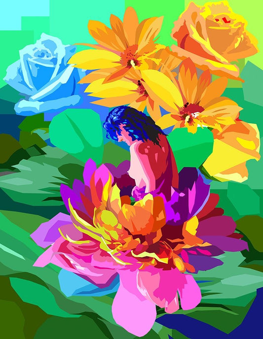 My Flowers No 01 White Modern Wood Framed Art Print with Double Matting by Pansanit, Surapol