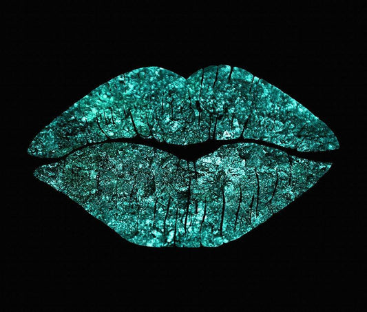 Teal Glitter Kiss White Modern Wood Framed Art Print with Double Matting by Lavoie, Tina