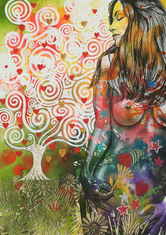 Tree Of Love White Modern Wood Framed Art Print with Double Matting by Stevenson, Graeme
