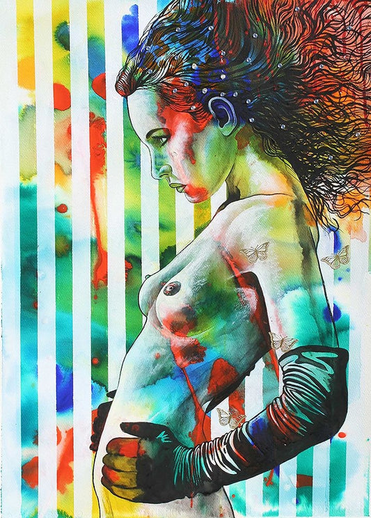 Watercolor Study - woman White Modern Wood Framed Art Print with Double Matting by Heine, Ben