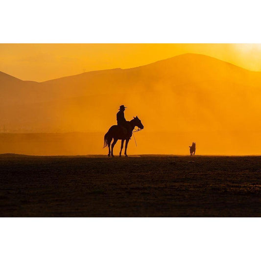 Evening ride Gold Ornate Wood Framed Art Print with Double Matting by Vekemans, Muriel