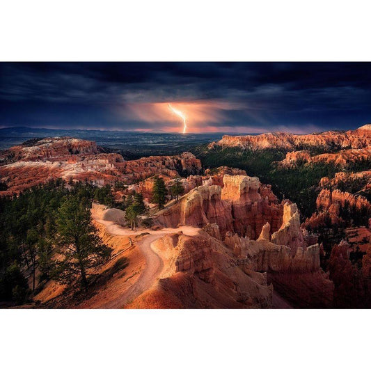 Lightning over Bryce Canyon Gold Ornate Wood Framed Art Print with Double Matting by Mitterwallner, Stefan