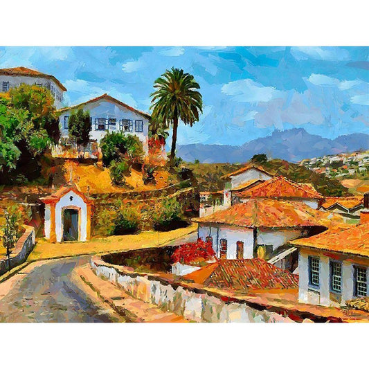 White Houses with Orange Roofs Gold Ornate Wood Framed Art Print with Double Matting by Medeiros, Celito