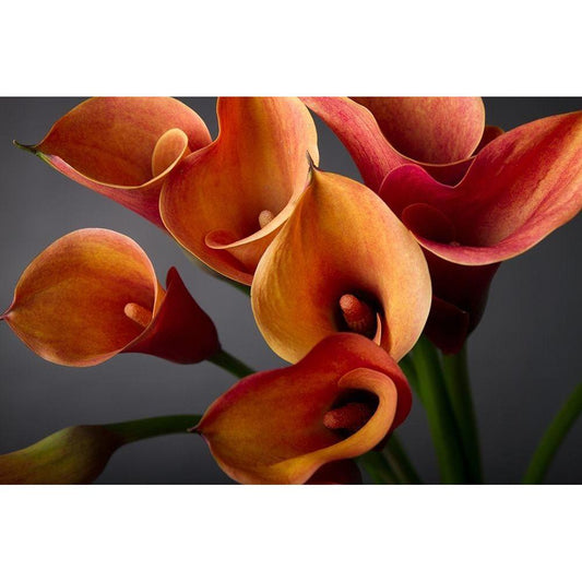 Orange Calla Lilies Gold Ornate Wood Framed Art Print with Double Matting by Anonymous