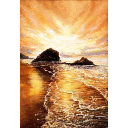Sunset Over Beach Gold Ornate Wood Framed Art Print with Double Matting by Dimitrov, Boyan