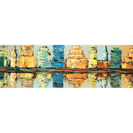 Skyline on Abstract Cityscape Gold Ornate Wood Framed Art Print with Double Matting by Atelier B Art Studio