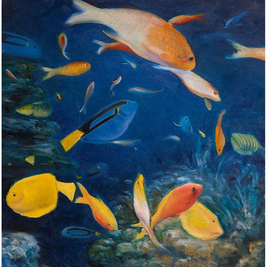 FISH UNDER THE SEA Gold Ornate Wood Framed Art Print with Double Matting by Atelier B Art Studio