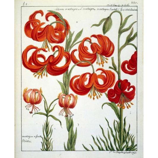 Lilium Martagon Gold Ornate Wood Framed Art Print with Double Matting by De Chazelles, Laurent