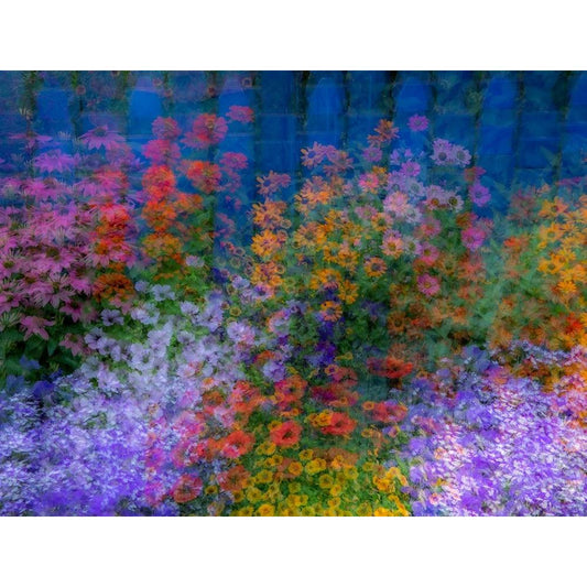 USA-Washington State-Pacific Northwest-Sammamish colorful flowers and blue picket fence Gold Ornate Wood Framed Art Print with Double Matting by Gulin, Sylvia