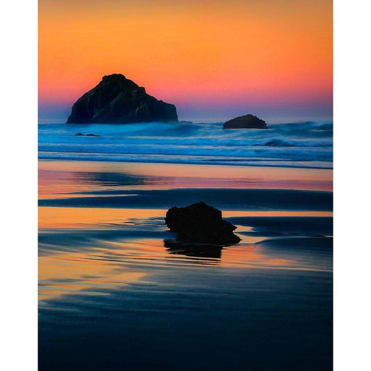 Oregon-Bandon Face Rock sea stack at sunset Gold Ornate Wood Framed Art Print with Double Matting by Jaynes Gallery