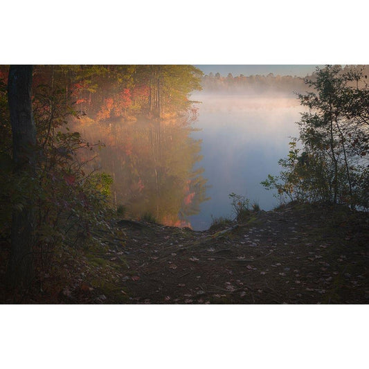 USA-New Jersey-Pine Barrens National Preserve Foggy forest and lake landscape Gold Ornate Wood Framed Art Print with Double Matting by Jaynes Gallery