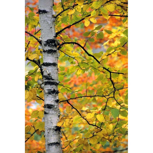 MI, White paper birch tree trunks amid red maple Gold Ornate Wood Framed Art Print with Double Matting by Carlson, Mark