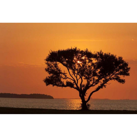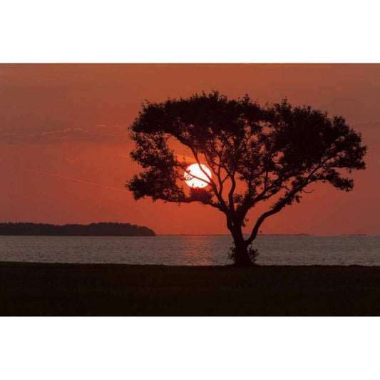 FL, Everglades NP, Tree silhouetted at sunrise Gold Ornate Wood Framed Art Print with Double Matting by Kaveney, Wendy