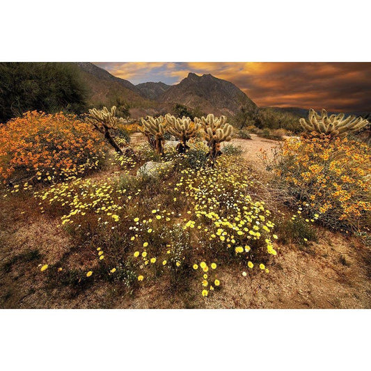 Desert wildflower bloom at Anza Borrego Park in California Gold Ornate Wood Framed Art Print with Double Matting by SMO