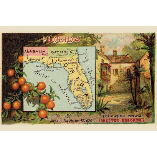 Florida Gold Ornate Wood Framed Art Print with Double Matting by Arbuckle Brothers