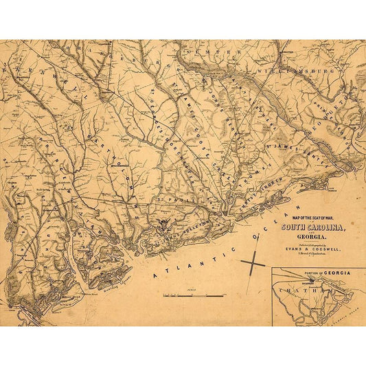 Seat of War in South Carolina and Georgia 1861 Gold Ornate Wood Framed Art Print with Double Matting by Vintage Maps