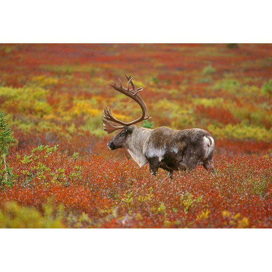 Caribou in fall foliage-Denali national Park-Alaska Gold Ornate Wood Framed Art Print with Double Matting by Garber, Howie