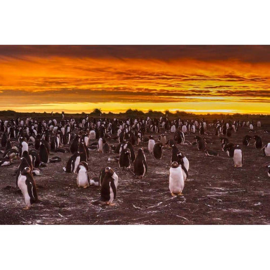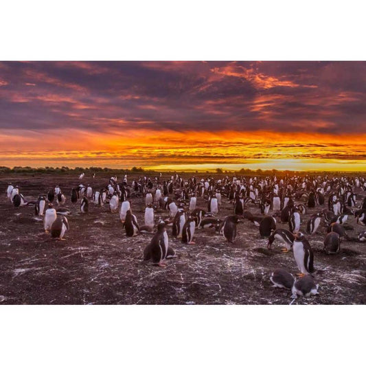 Sea Lion Island Gentoo penguins colony at sunset Gold Ornate Wood Framed Art Print with Double Matting by Illg, Cathy and Gordon