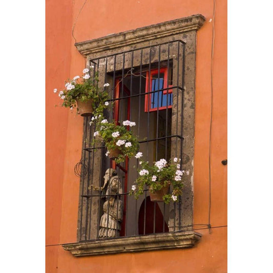 Mexico Flower pots decorate window Gold Ornate Wood Framed Art Print with Double Matting by Young, Bill