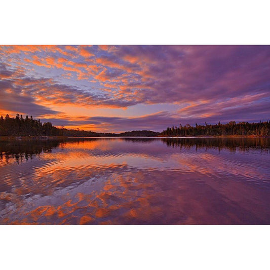 Canada-Ontario-Kenora District Forest autumn colors reflect on Middle Lake at sunrise Gold Ornate Wood Framed Art Print with Double Matting by Jaynes Gallery
