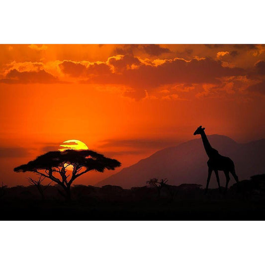 Kenya-Amboseli National Park Abstract sunset with giraffe and acacia tree silhouettes Gold Ornate Wood Framed Art Print with Double Matting by Jaynes Gallery