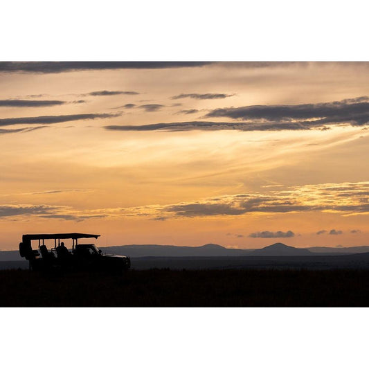 Africa-Kenya-Northern Serengeti Plains-Maasai Mara-Mara sunrise with safari jeep silhouette Gold Ornate Wood Framed Art Print with Double Matting by Hopkins, Cindy Miller