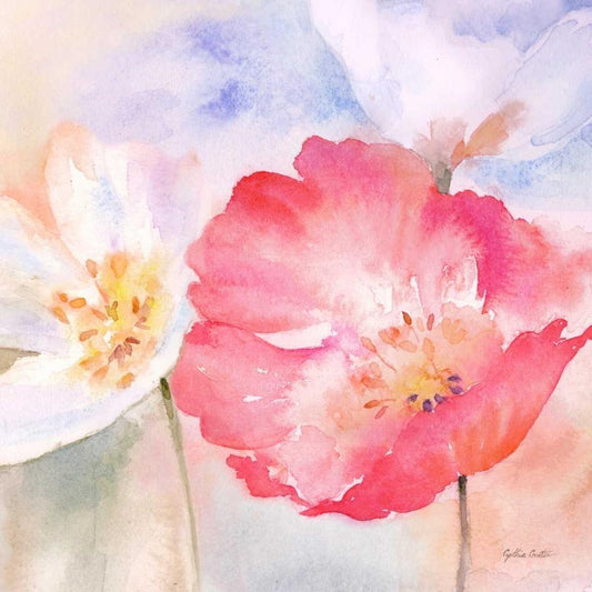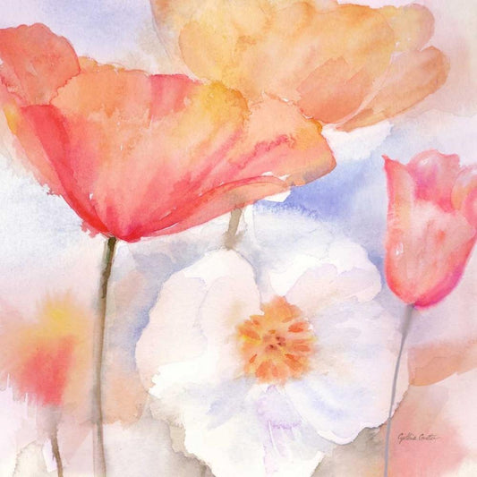 Watercolor Poppy Meadow Pastel I Gold Ornate Wood Framed Art Print with Double Matting by Coulter, Cynthia