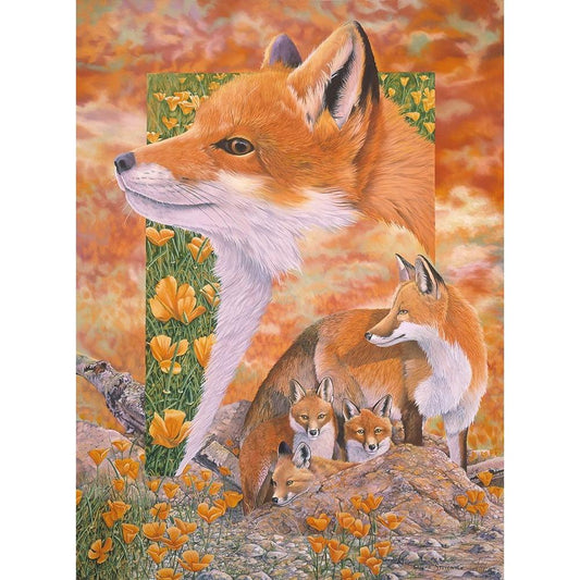 Foxes Gold Ornate Wood Framed Art Print with Double Matting by Stevenson, Graeme