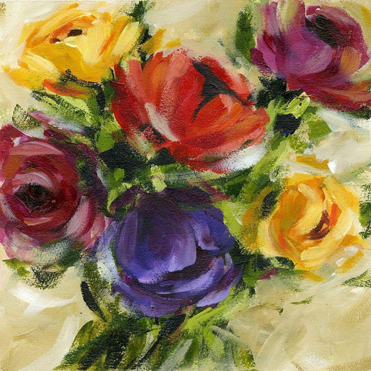 Bright Floral II Gold Ornate Wood Framed Art Print with Double Matting by King