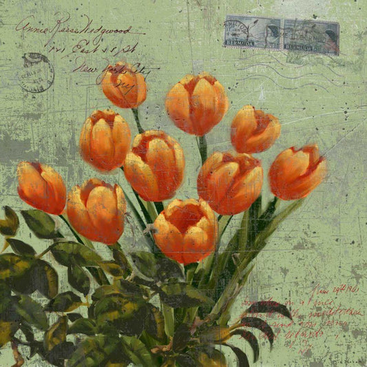 Orange Blooms and Postage I Gold Ornate Wood Framed Art Print with Double Matting by Novak, Rick