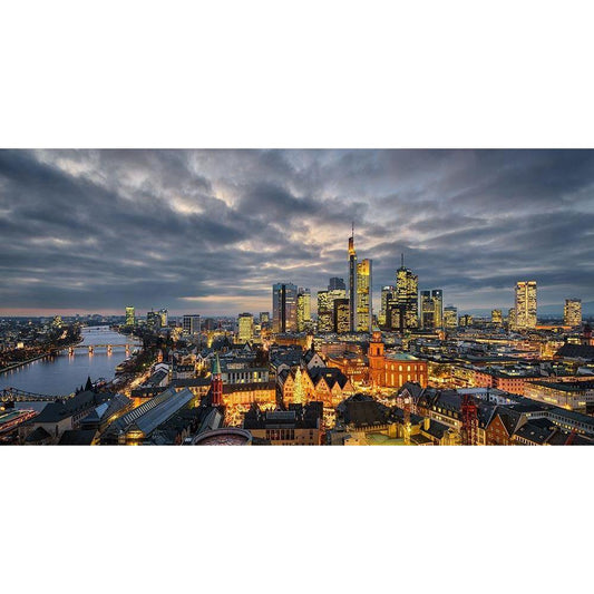 Frankfurt - Evening Skyline Gold Ornate Wood Framed Art Print with Double Matting by Abid, Michael