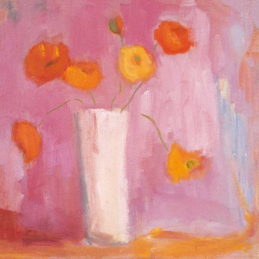 Mandarin Poppies Gold Ornate Wood Framed Art Print with Double Matting by Clark, Michael