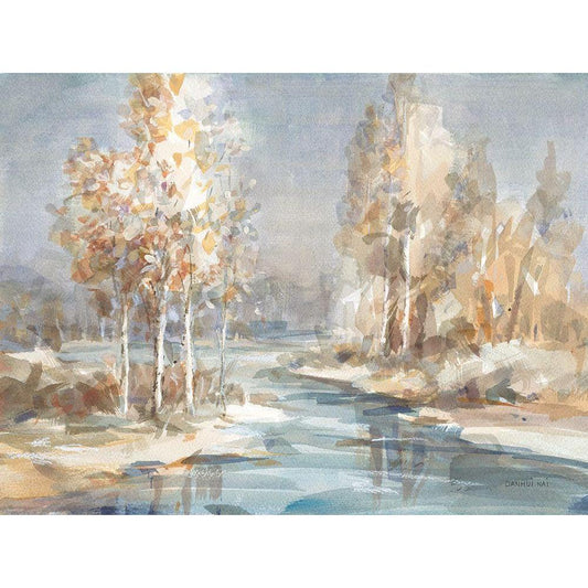 Flowing River Gold Ornate Wood Framed Art Print with Double Matting by Nai, Danhui