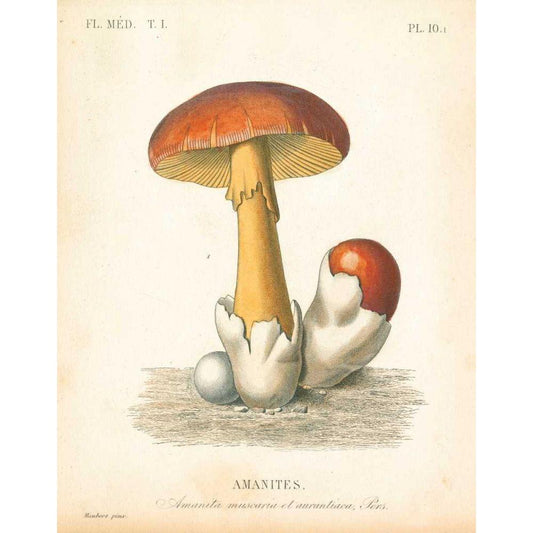 French Mushrooms I Gold Ornate Wood Framed Art Print with Double Matting by Wild Apple Portfolio