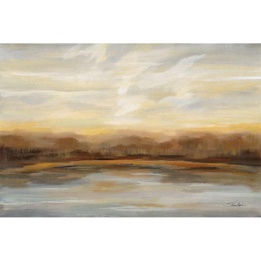 Fall Lake Sunset Gold Ornate Wood Framed Art Print with Double Matting by Vassileva, Silvia
