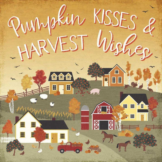 Harvest Village IV Script Gold Ornate Wood Framed Art Print with Double Matting by Marshall, Laura