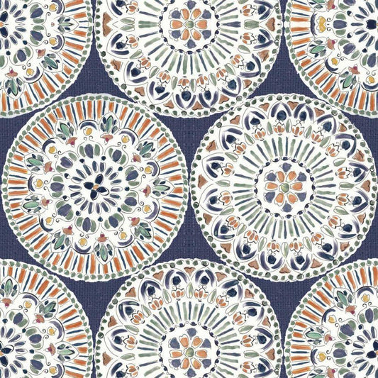 Hacienda Tile II Bluestone Gold Ornate Wood Framed Art Print with Double Matting by Hershey, Moira