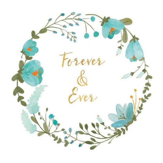 Romantic Floral I Blue Gold Ornate Wood Framed Art Print with Double Matting by Wild Apple Portfolio